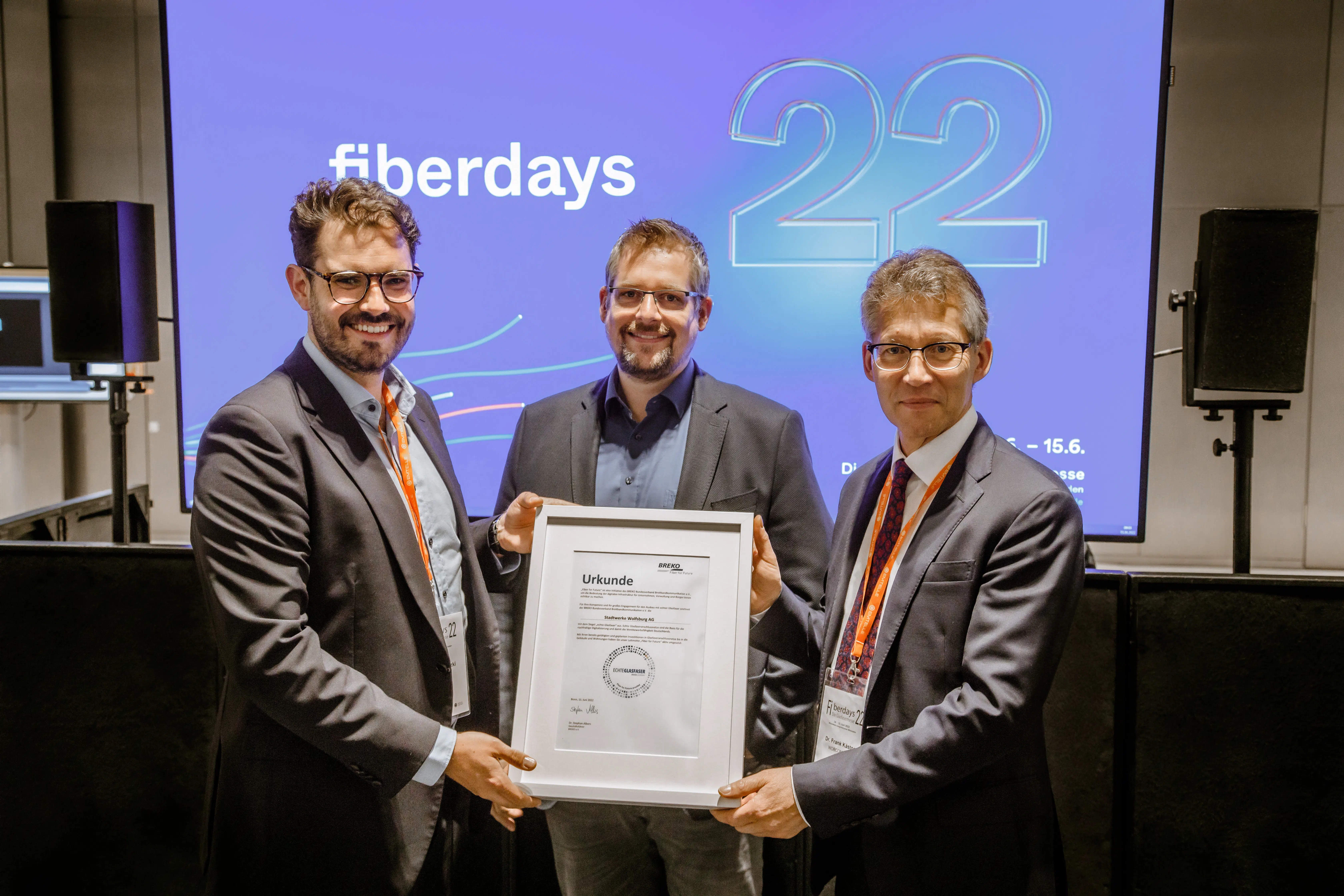 Roman Skrodzki, Referent für Kommunalpolitik, BREKO e.V.: „Zukunftssichere Glasfasernetze bis in die Gebäude und Wohnungen machen Städte und Kommunen zu attraktiven Standorten für Einwohner:innen und Unternehmen. Sie sind Kernbestandteil einer energieeffizienten und nachhaltigen digitalen Infrastruktur und ein Fundament für die Digitalisierung. Die Stadtwerke Wolfsburg und ihre Tochtergesellschaft WOBCOM haben frühzeitig begonnen den Ausbau der Glasfasernetze in der Stadt Wolfsburg voranzutreiben. Daher freuen wir uns Sie heute hier im besonderen Rahmen auf den Fiberdays mit dem Siegel „Echte Glasfaser“ auszeichnen zu können.“.