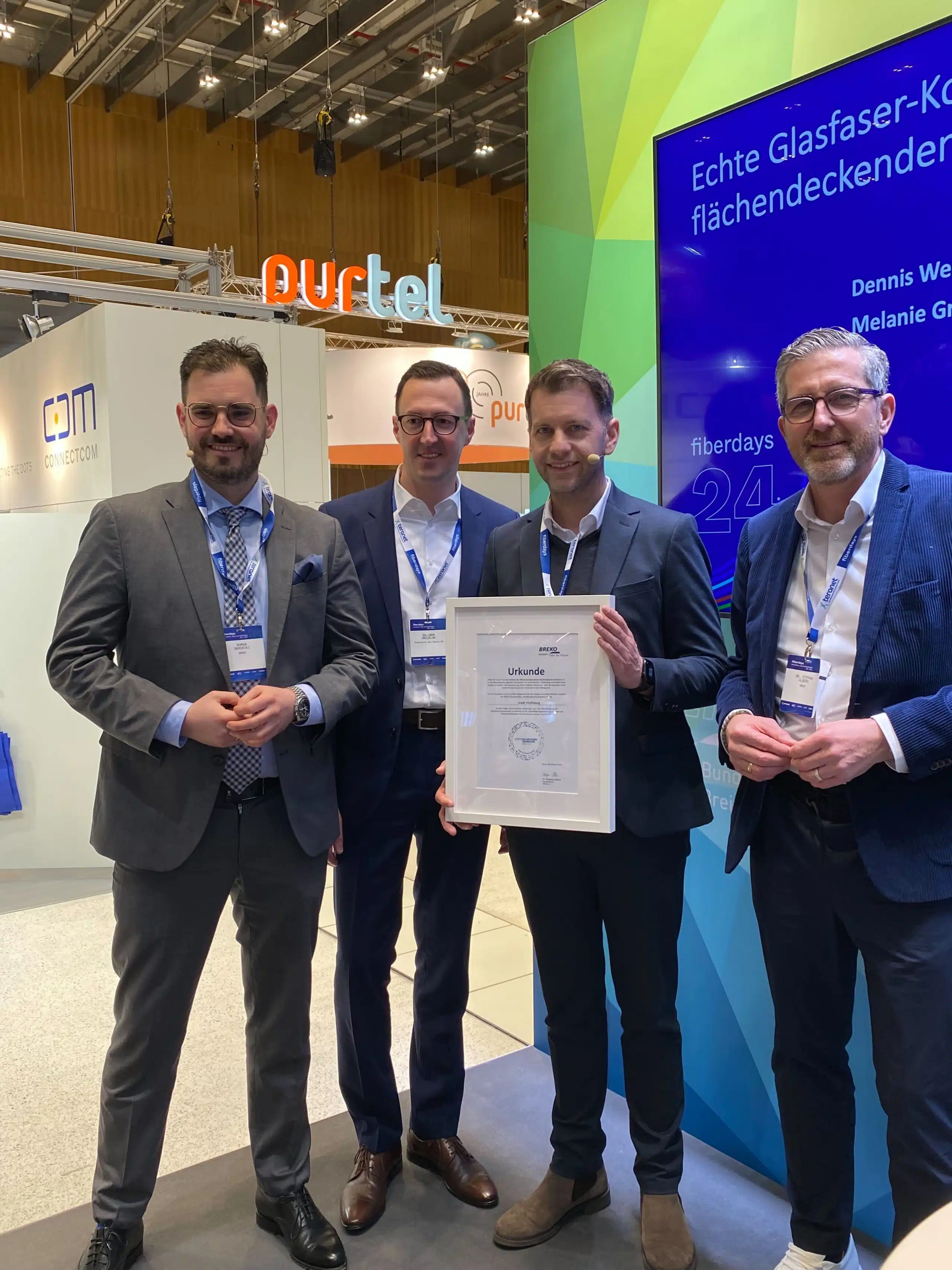 Bei den fiberdays hat die Stadt Wolfsburg am 28. Februar die Auszeichnung „Echte Glasfaser-Kommune“ erhalten. Oberbürgermeister Dennis Weilmann und Dalibor Dreznjak, WOBCOM-Geschäftsführer, nahmen die Urkunde in Wiesbaden entgegen.