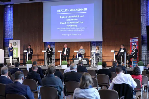 Gemeinsam mit dem eco Verband der Internetwirtschaft e.V. und seiner Tochtergesellschaft DE-CIX richtete die WOBCOM die Veranstaltung „Digitale Souveränität und Innovation – GAIA-X für Wirtschaft und Verwaltung“ am Dienstag, 6. Oktober 2020, im CongressPark in Wolfsburg aus.