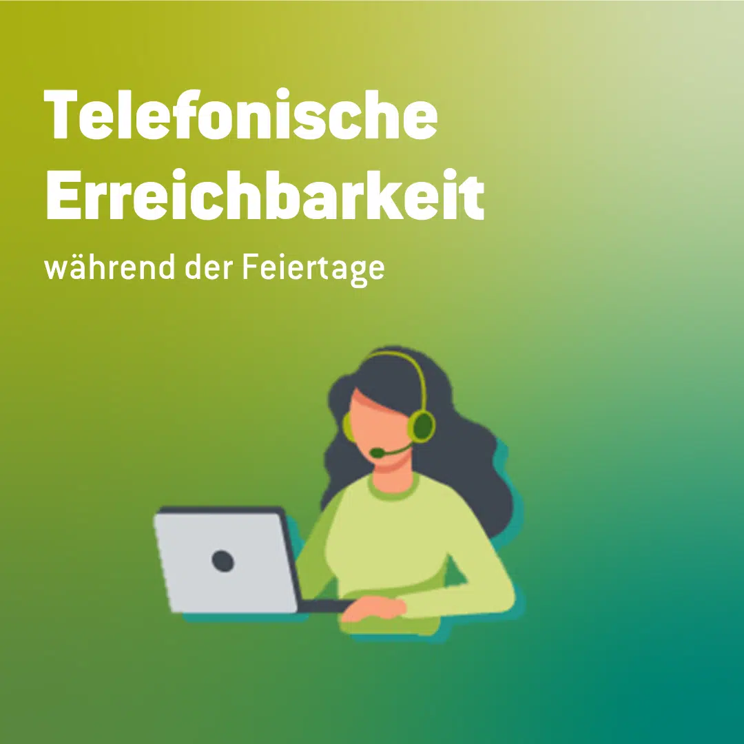 Ansonsten stehen wir Ihnen zu den üblichen Servicezeiten zur Verfügung – sowohl telefonisch, als auch persönlich in unseren Servicecentern.