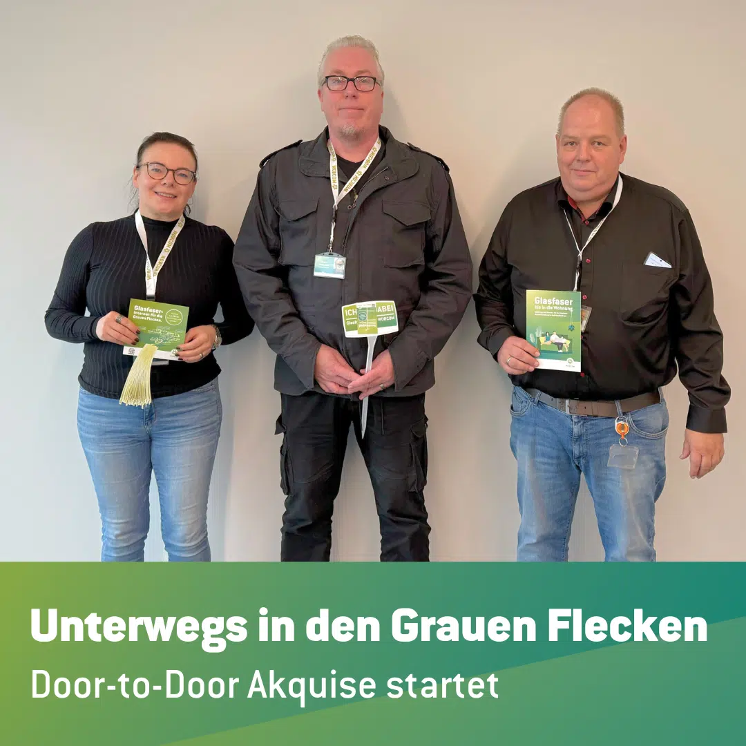 Tanja, Jürgen und Kai sind in den Grauen Flecken unterwegs, um eure Fragen rund um den Glasfaseranschluss zu beantworten. Nutzt die Chance und sichert euch bis zum 30.11.2024 euren Vertrag – jetzt schnell sein!