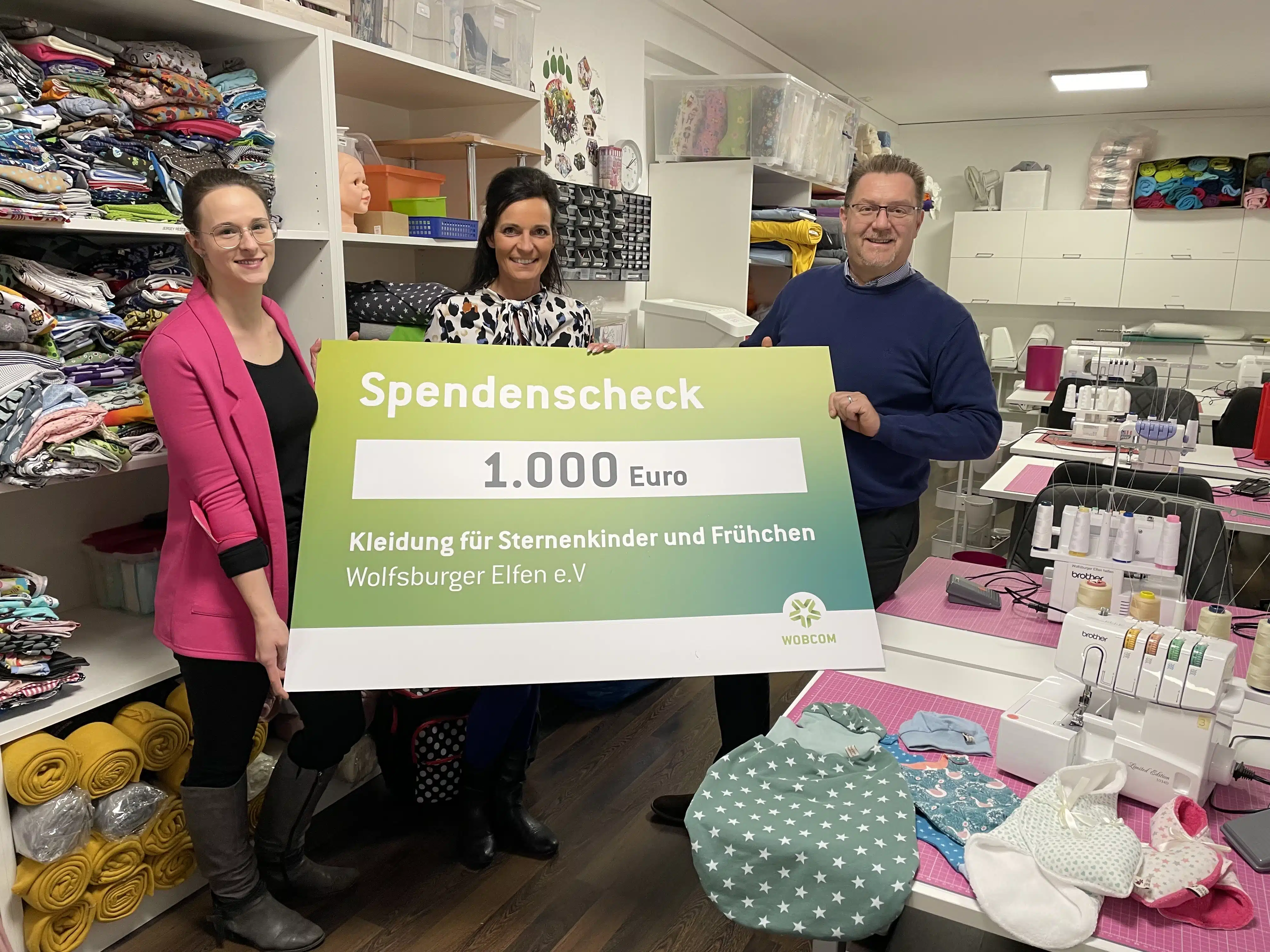Sie nähen für den guten Zweck – die Wolfsburger Elfen e.V. fertigen Kleidung für Sternenkinder und Frühchen. Das Team der Elfen besteht aus Kreativen und Nähbegeisterten, die sich zusammengetan haben, um ehrenamtlich Kleidungsstücke, Mützen und Kuscheltiere für kleine Kämpfer zu nähen. Die Kleidung geht an Krankenhäuser in Wolfsburg und der Region. Die WOBCOM GmbH unterstützt mit ihrer Weihnachtspende über 1.000 Euro das Engagement der Elfen.